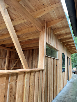 Das wahrscheinlich auffälligste Gestaltungsmerkmal der Zimmerei ist wohl die Farbe Pink im Firmenlogo und auf dem Kopf Ihres Mannes, des „Magenta Mützenträgers“. „Die gehört einfach zu ihm und da ist es doch nur konsequent dieses Alleinstellungsmerkmal auf Logo, Webseite, Fahrzeugbeschriftung und alle weiteren Werbemittel zu übertragen“ erklärt sie augenzwinkernd. Mit Stolz blicken beide gerne auf den Beginn zurück.